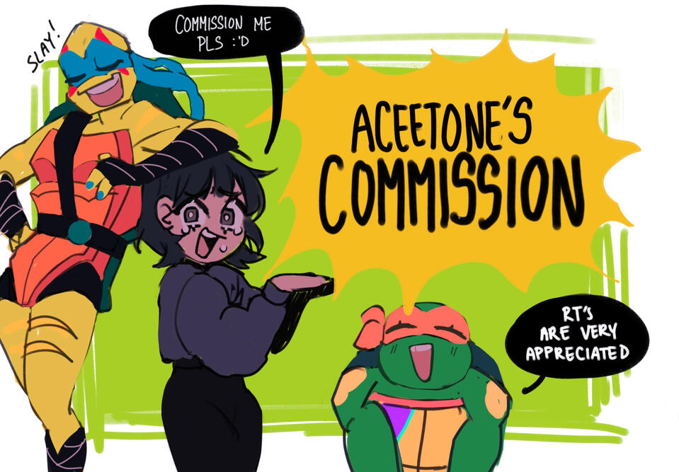 Commissions, excluding reference sheets, must be from EXISTING CHARACTERS. Characters from anime, cartoon, shows, and OCs are allowed. As long as there’s graphic reference to your OC, it’s okay.